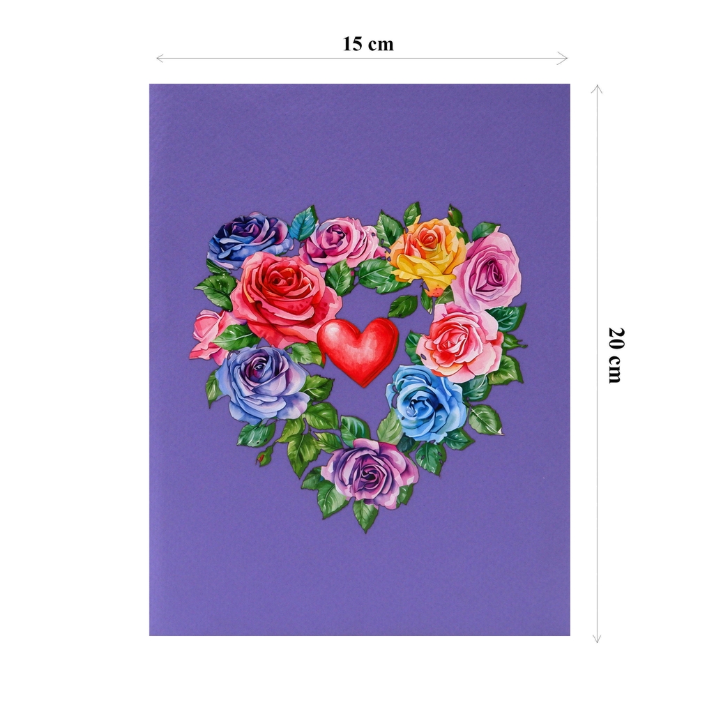 This design is especially popular for Valentine’s Day, anniversaries, weddings, or romantic occasions. The eye-catching floral heart also makes it a strong retail display piece that attracts customers looking for unique love-themed greeting cards.